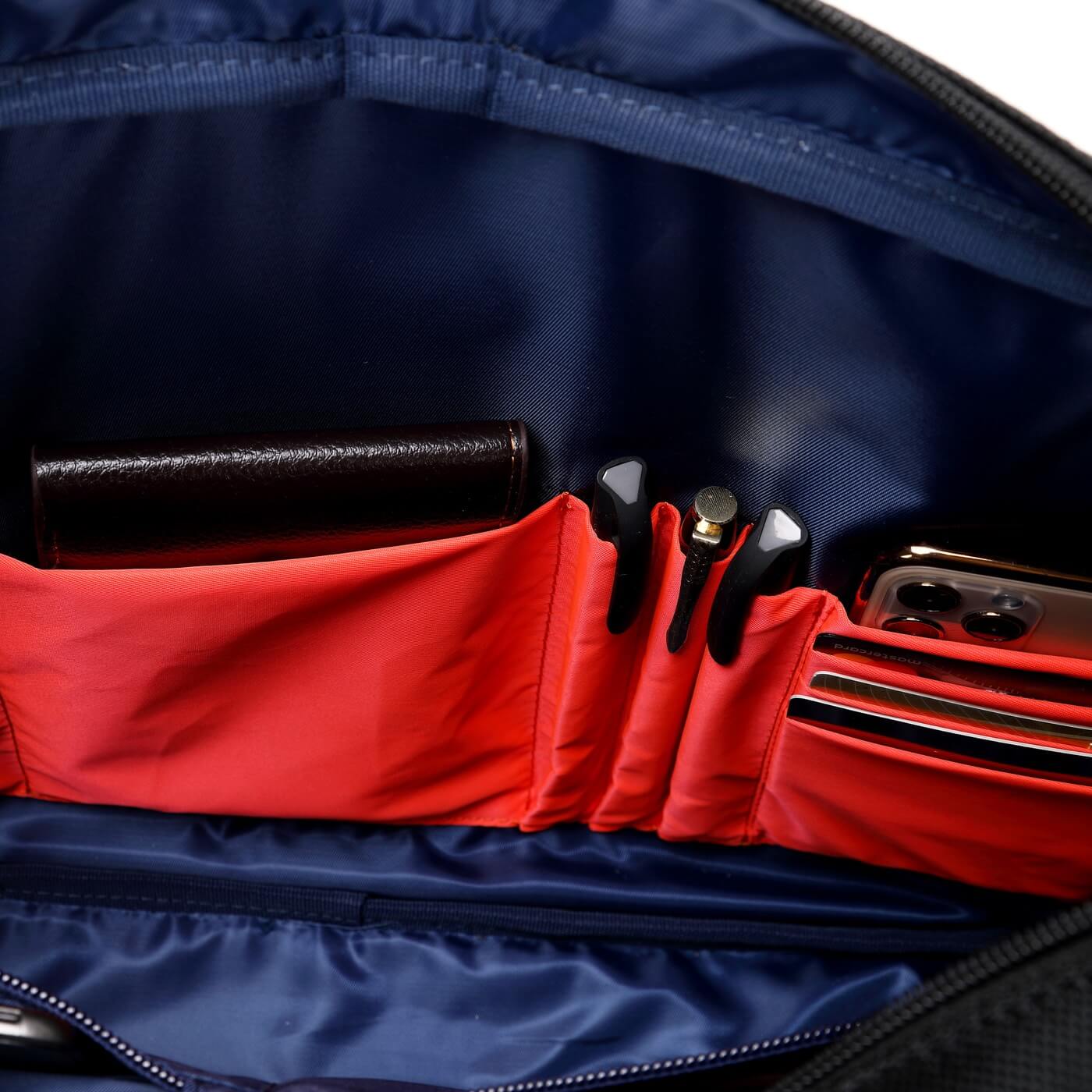 Un espace de rangement au design pratique et doté de nombreuses poches vous permettra d'organiser clairement vos affaires. De plus, l'une des poches peut être ouverte jusqu'à 180 degrés pour une orientation et une manipulation encore plus faciles.