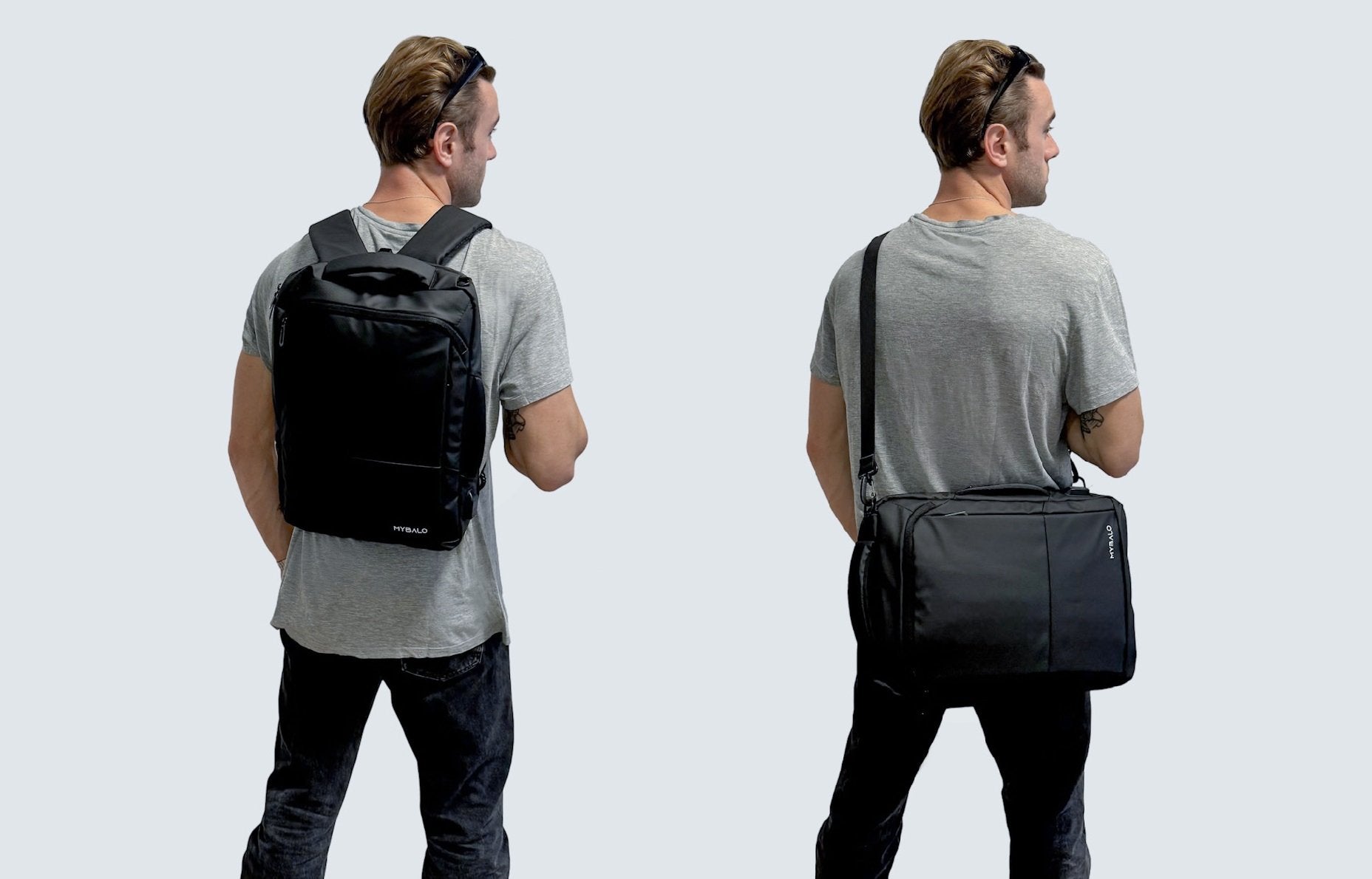 Portez MYBALO Madrid de trois manières possibles. Vous ne voulez pas aller à une réunion avec un sac à dos sur le dos ? Aucun problème. Cachez simplement les bretelles et portez-le comme un sac à la main. Vous pouvez le transformer en sac à bandoulière en attachant la bandoulière.