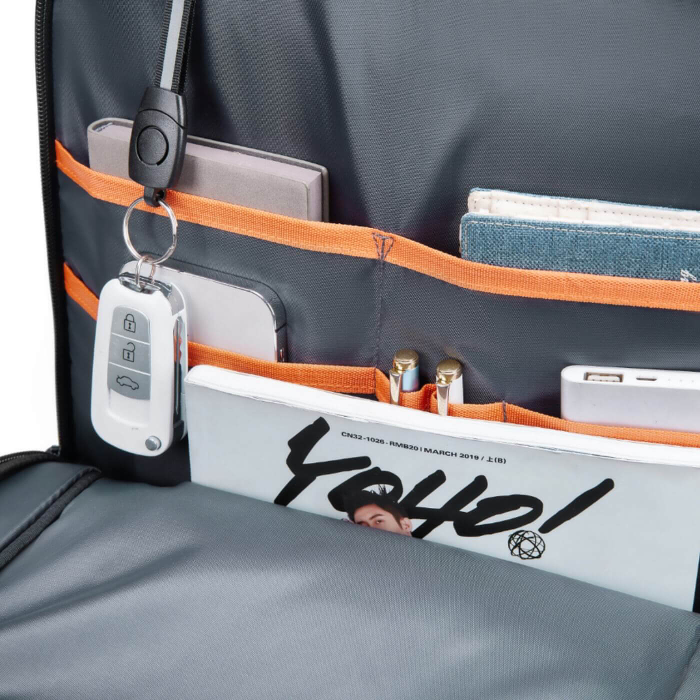 Évitez le risque de perdre vos clés en les attachant à la sangle prévue dans la poche avant.