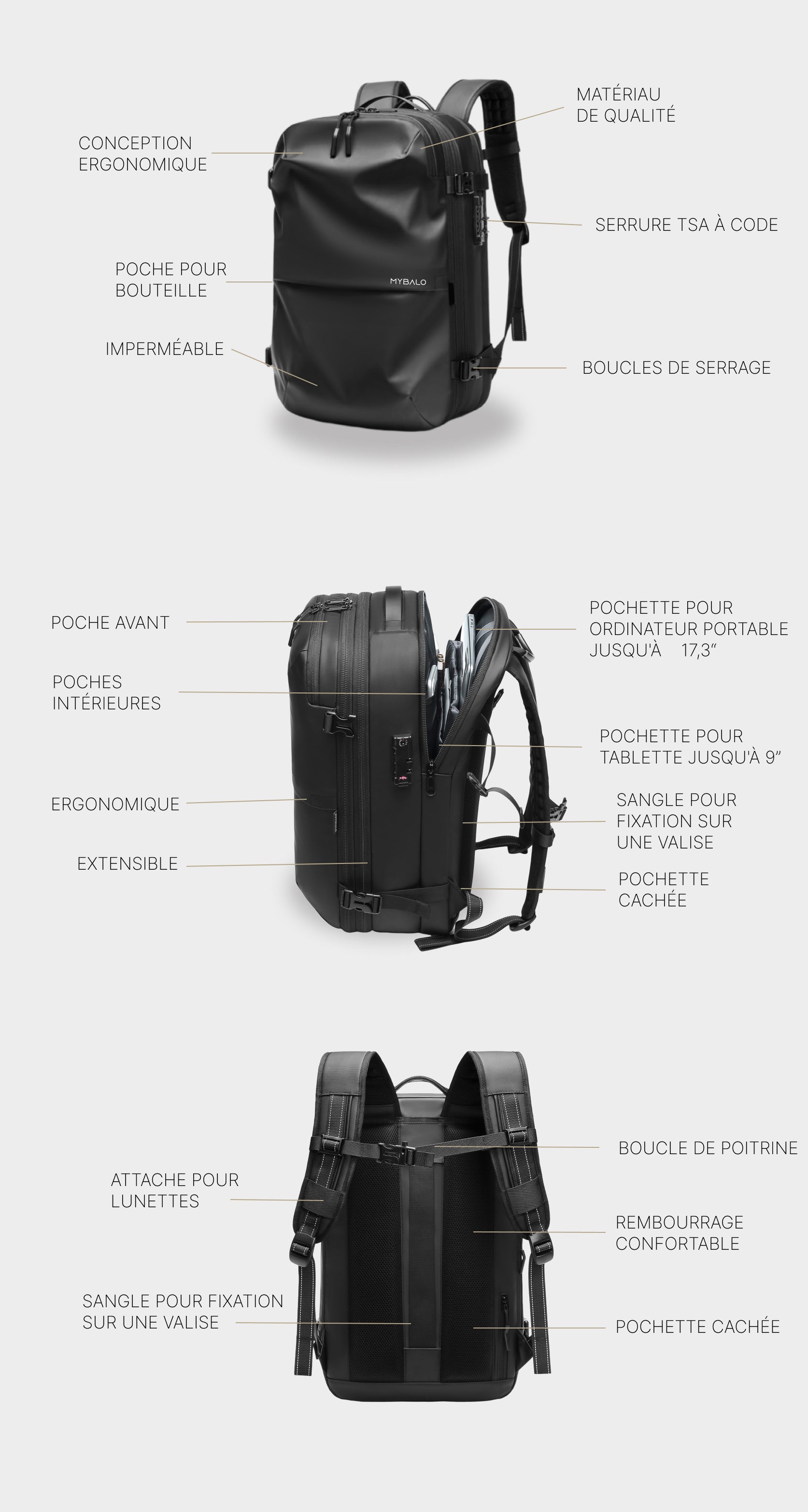 - Sac à dos de voyage/sac à dos pour ordinateur portable
