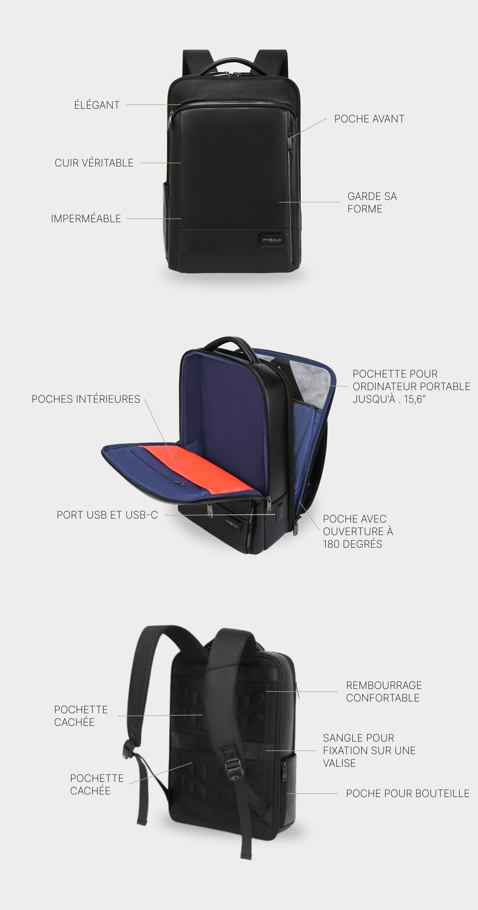 Vous recherchez un sac à dos élégant, stylé et pratique pour un usage quotidien comme pour des occasions plus officielles ? Nous avons la solution idéale pour vous : le sac à dos MYBALO Zante. Son aspect élégant et minimaliste et sa praticité vous accompagneront aussi bien lors d'une réunion importante que lors d'une journée de travail au bureau ou lors de courses en ville.