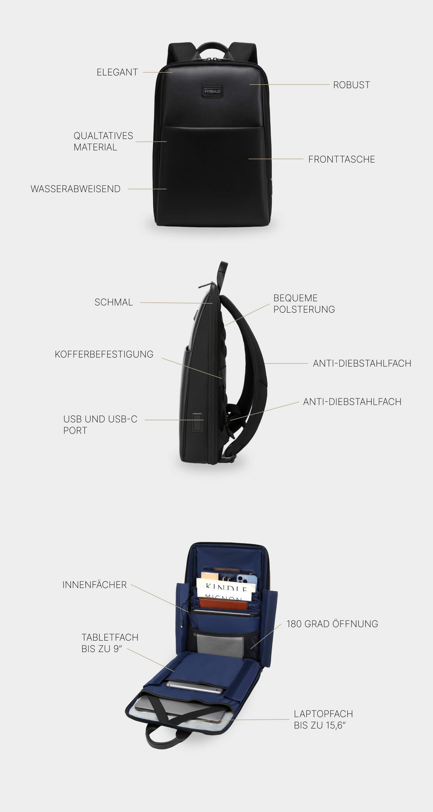 MYBALO Aston ist der Rucksack mit der kleinsten Tiefe in unserem Angebot. Dadurch sieht es elegant und minimalistisch aus, bietet aber dennoch Platz für alle wichtigen Dinge.