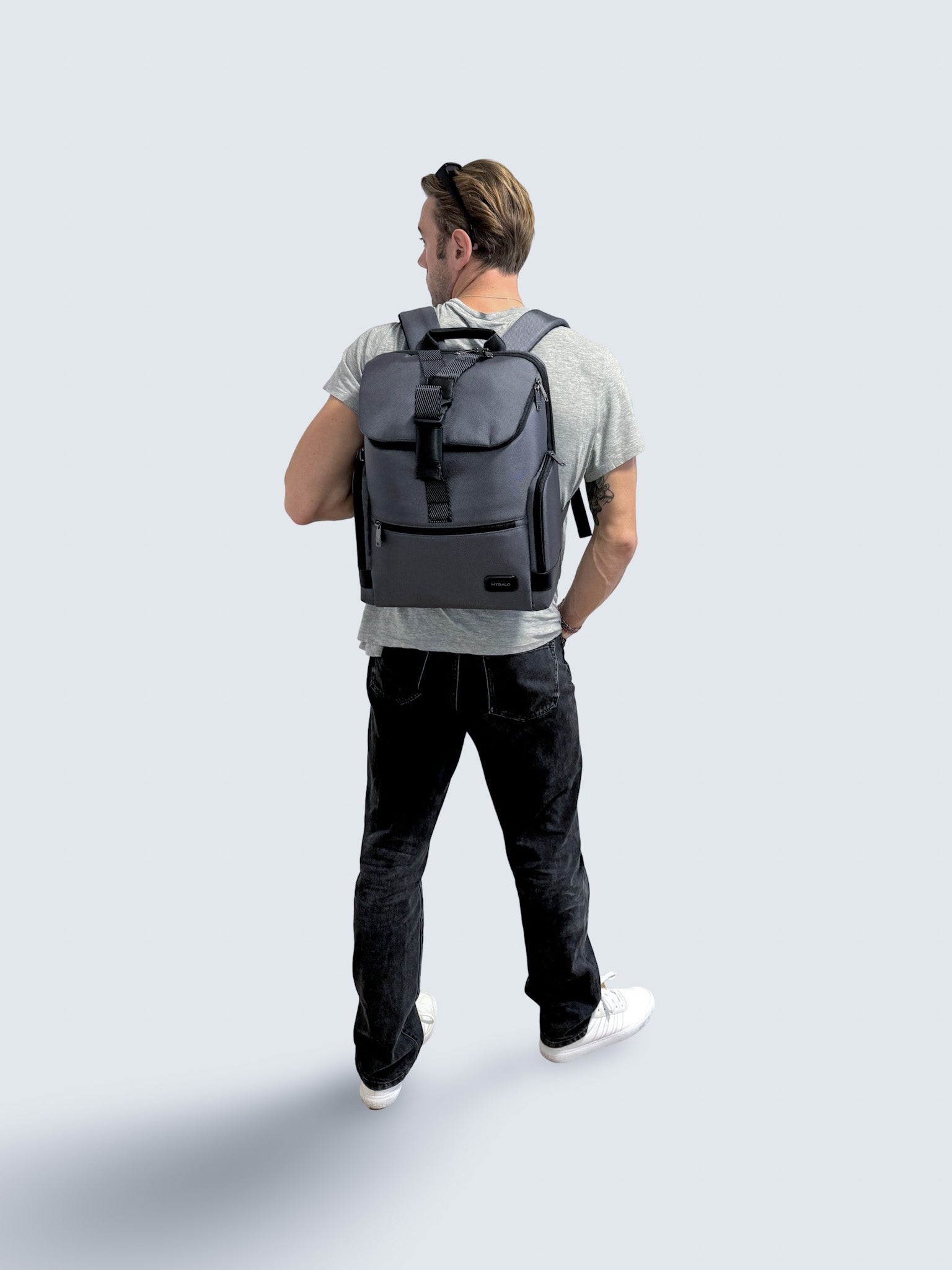 Der Bangi Rucksack ist in zwei Farbvarianten erhältlich, Grau und Schwarz. Wählen Sie diejenige, die besser zu Ihnen passt.