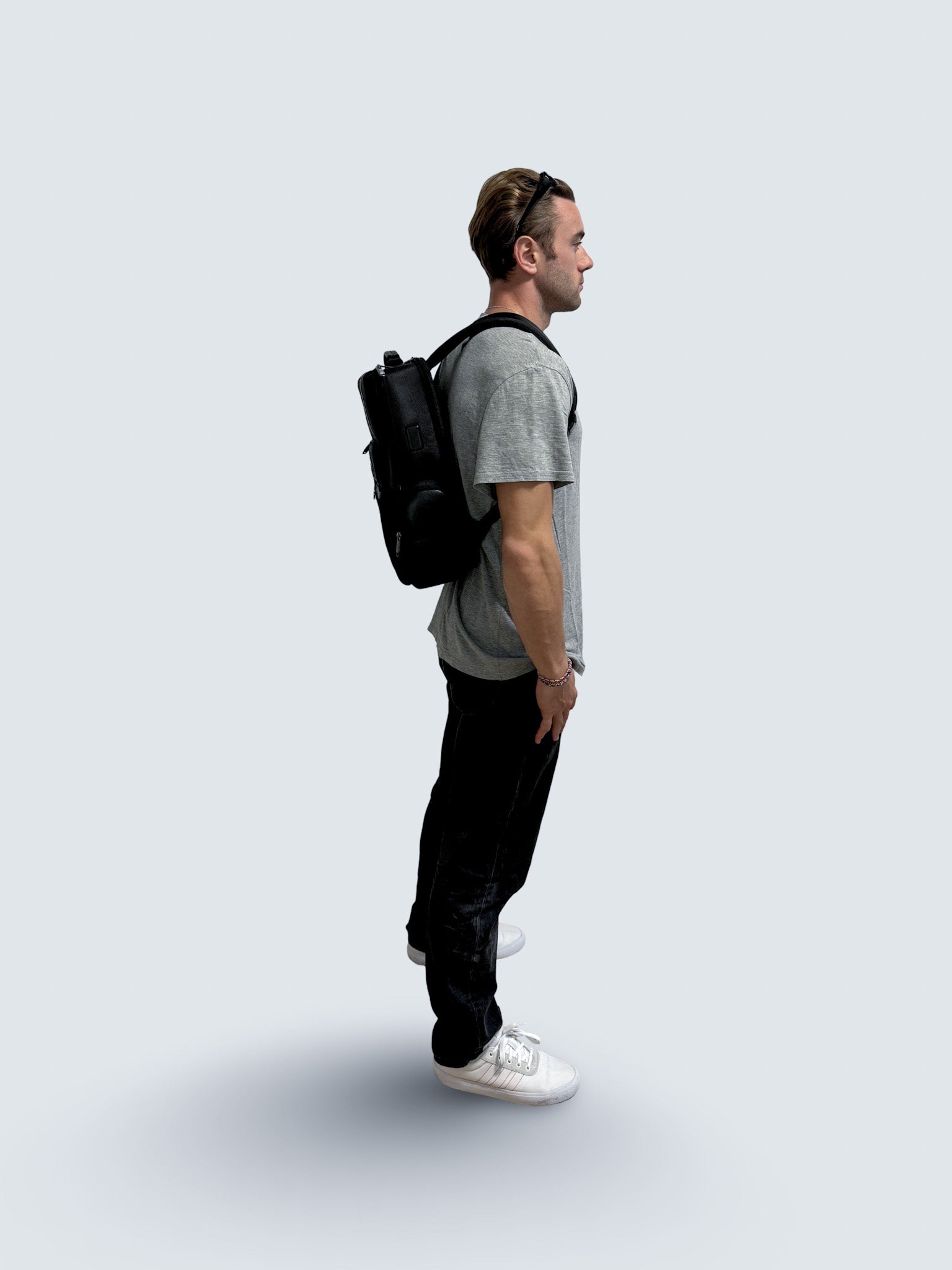 Schließen Sie Ihre eigene Powerbank an den integrierten USB-Anschluss im Inneren des Rucksacks an. Anschließend schließen Sie Ihren Laptop, Ihr Tablet oder Ihr Mobiltelefon von außerhalb des Anschlusses an. Den externen USB- oder USB-C-Anschluss finden Sie auf der linken Seite des Rucksacks. So können Sie Ihre elektronischen Geräte jederzeit und überall bequem und einfach aufladen.